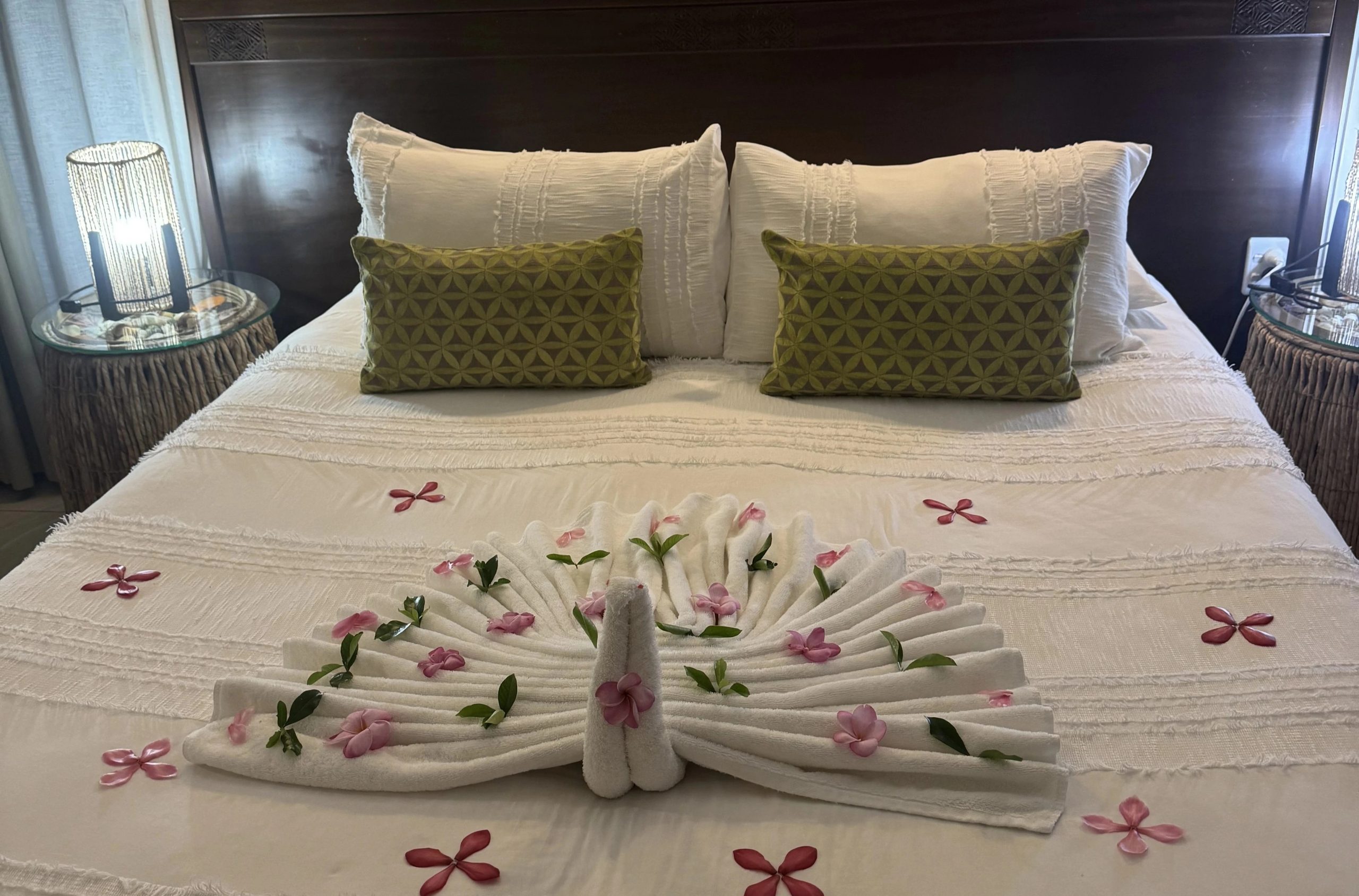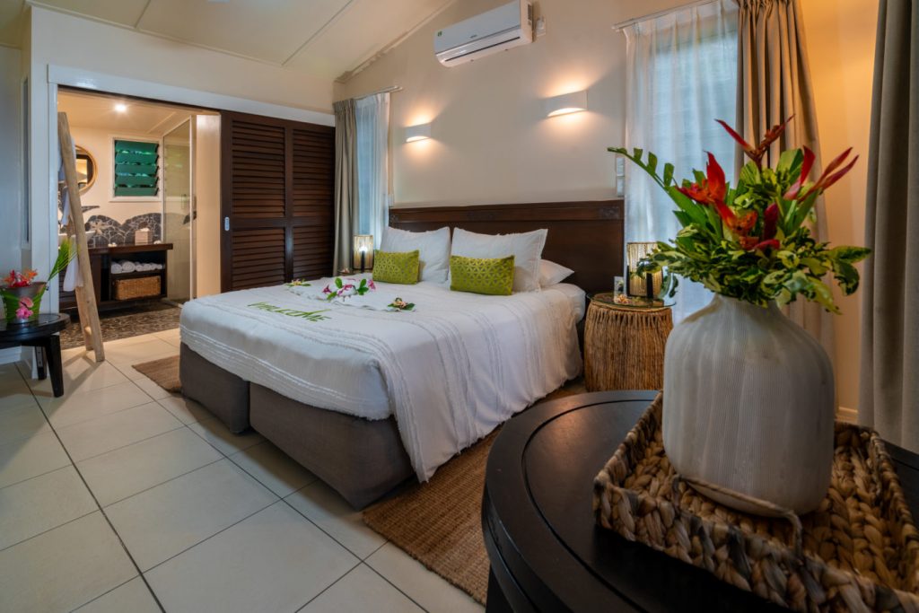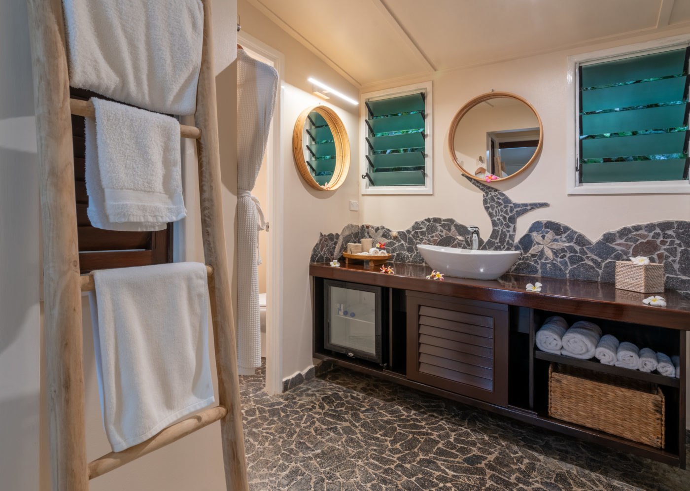 With stunning views of the lagoon and infinity pool, our 45sqm Ocean View Villas (including deck) are designed for two guests and celebrate seamless outdoor living. Each villa features a spacious thatched pavilion, a private deck with comfortable outdoor furnishings, and a relaxing double hammock — the perfect spot to relax and soak in the island serenity.